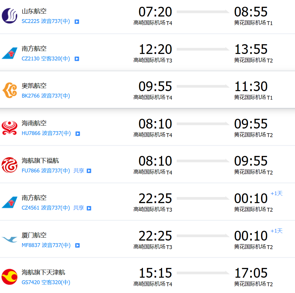 廈門高崎國(guó)際機(jī)場(chǎng)有直飛湖南長(zhǎng)沙黃花機(jī)場(chǎng)的航班,具體參考如下: