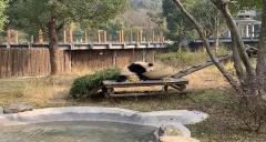 靈長類動物館占地2214平方米,飼養(yǎng)了狒狒、白眉長臂猿、白頰長臂猿、食蟹猴、綠猴、黑白猶猴等靈長類動物。場地依山就勢,展覽廳寬敞,通風良好,有室外活動場。每個場館鄰活動一側(cè)均布置成石山景觀,與整個外部運動場自然景觀環(huán)境較好的融為了一體。場館的外部裝飾上采用了原生態(tài)的樹干和卵石作為立面裝飾材料。游客與猴群之間被壕溝水面隔離,確保了游客與猴群雙方的安全。
