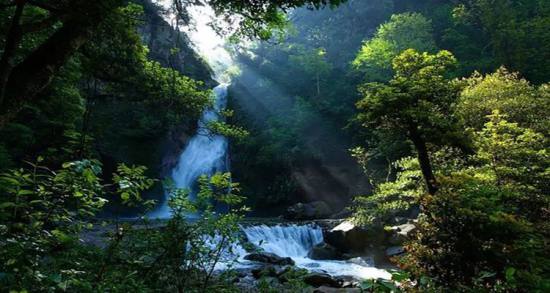 神農(nóng)谷國(guó)家森林公園內(nèi)森林茂密,小氣候環(huán)境優(yōu)越、空氣清新、負(fù)離子含量高,更能促進(jìn)人體身心健康。澗深谷幽,一巨石雄踞路頭,繞石而進(jìn),豁然開朗,瀑布自48.2米的絕壁上轟鳴而下,水珠飛濺,如滾珠噴雪,迷霧茫茫,凝視上端,有如輕紗飄蕩,又如煙霧翻滾,其趣無(wú)窮。