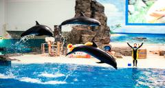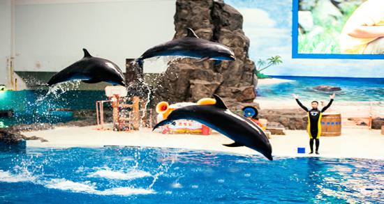 極地館:主要為極地動(dòng)物區(qū),分為白鯨池、海獅池、海豚池、海豹池、企鵝池、水獺池等水生生物展示休息表演池,以及北極狼舍、北極狐舍等陸生生物展示休息籠舍。館內(nèi)建有一個(gè)高大寬敞明亮,音響等設(shè)備設(shè)施先進(jìn)配備LED大型顯示屏的表演劇場,可供1800多游客同時(shí)近距離觀賞海豚、海獅等精彩表演。