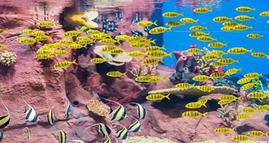 海洋館:主要為海洋生物區(qū),按展示內(nèi)容分為淡水魚區(qū)、海水魚區(qū)。淡水魚區(qū)根據(jù)魚只的原始生活區(qū)域細(xì)分為熱帶雨林區(qū)、非洲魚區(qū)、中國魚區(qū)三個(gè)展示區(qū)。海水魚區(qū)則以魚類的種屬及特性予以分別展示。館內(nèi)擁有生物400余種,近7000尾,其中無脊椎動(dòng)物約35種,300余個(gè)。淡、海水魚300余種,近6000余尾,有2中兩棲類動(dòng)物,10種爬行動(dòng)物。
